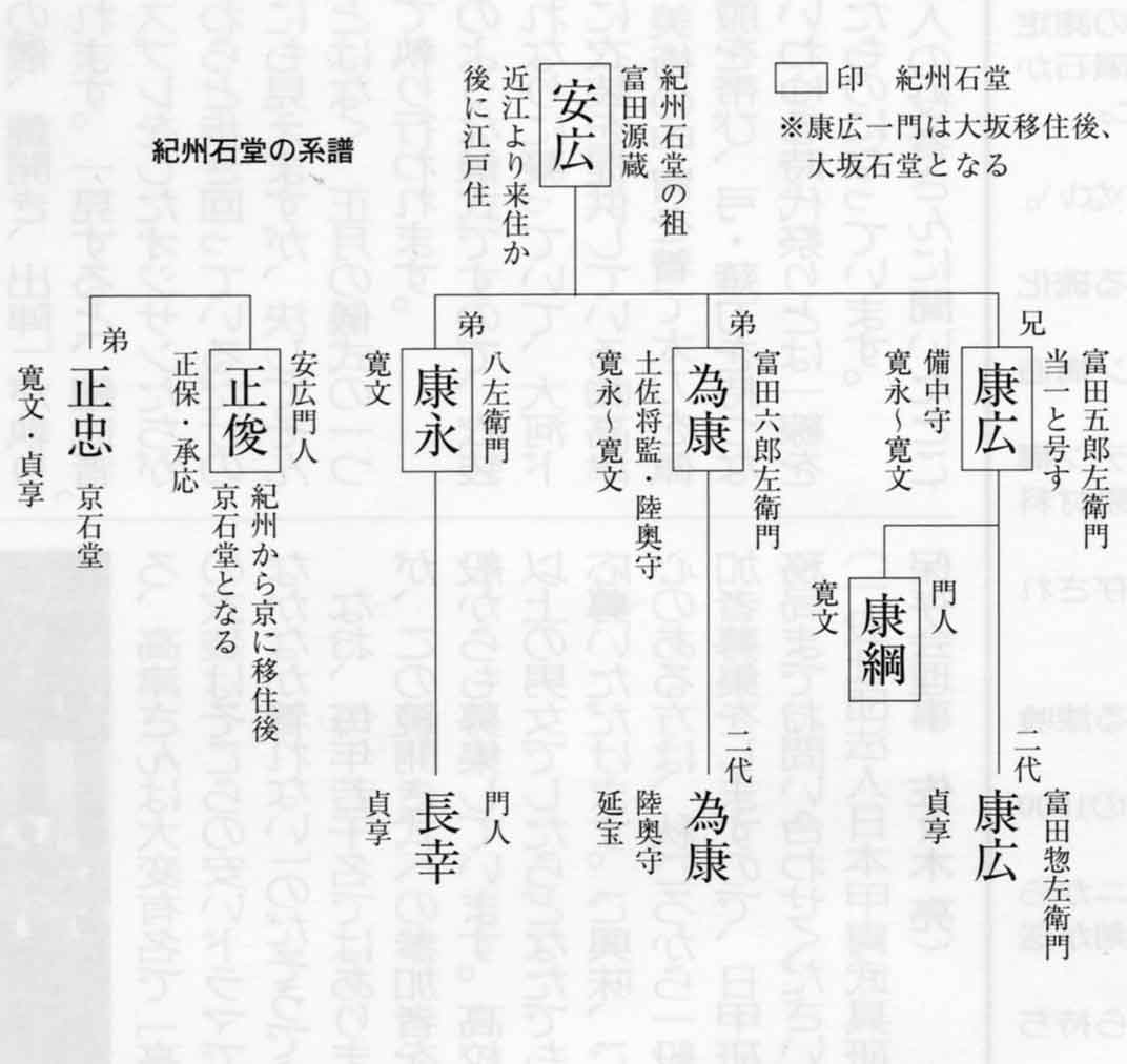 また紀州の地からさらに需要を求め大坂に移った長幸らを大坂石堂、京に行った正俊・正忠兄弟を京石堂と呼びます。