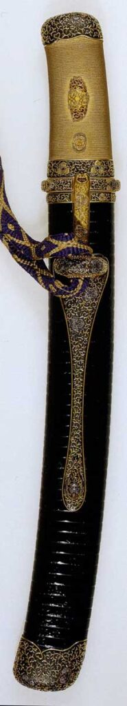 黒漆塗葵唐草文刻鞘小サ刀拵が附帯する。